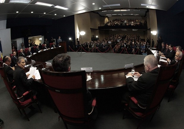 O ministro Joaquim Barbosa, que presidirá o STF a partir de 22 de novembro, também participa do encontro. O atual presidente da Suprema Corte se aposentará compulsoriamente no dia 18, quando completa 70 anos, idade-limite para os funcionários públicos.